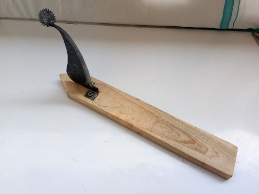 Traditional Handmade Iron Vegetable Cutter / Boti / Aruvamanai with Wood Base (Medium Size, Length 45 cm, Width 8 cm, Blade Length 20 cm)