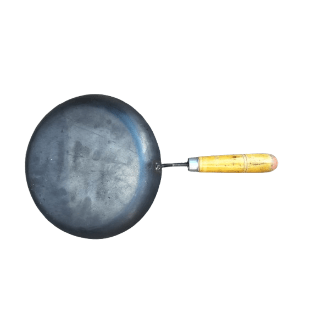 Upgrade your kitchen with this 10.5 Inch Traditional Iron Frying Pan with Wooden Handle, designed for authentic taste and long-lasting performance. Its flat base and sturdy edges make it perfect for fish fry, vegetable fry, omelettes, and everyday cooking. Made from high-quality iron, this pan ensures even heat distribution, retains heat longer, and helps enrich your food with natural iron β a healthy choice for your family.