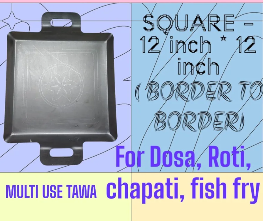 Upgrade your kitchen with this premium-quality Square Iron Tawa – perfect for making crispy dosas, soft rotis, parathas, chillas, and more!