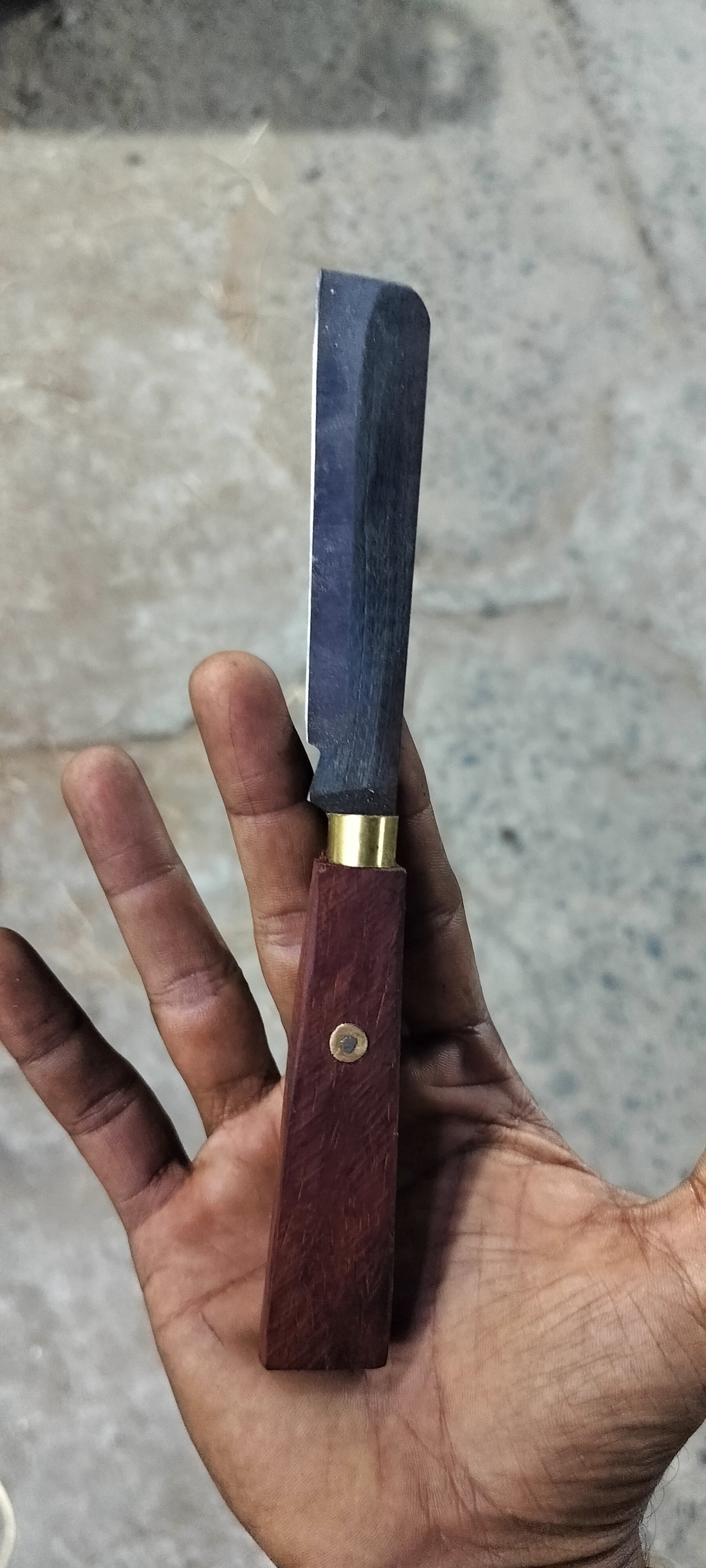 Secure grip --The wooden handle attached with the kitchen knife is perfectly shaped and well nailed. The nailing has been properly done, so it won't hurt the hand. The shape of the handle is secure, comfortable grip and ease of movement.