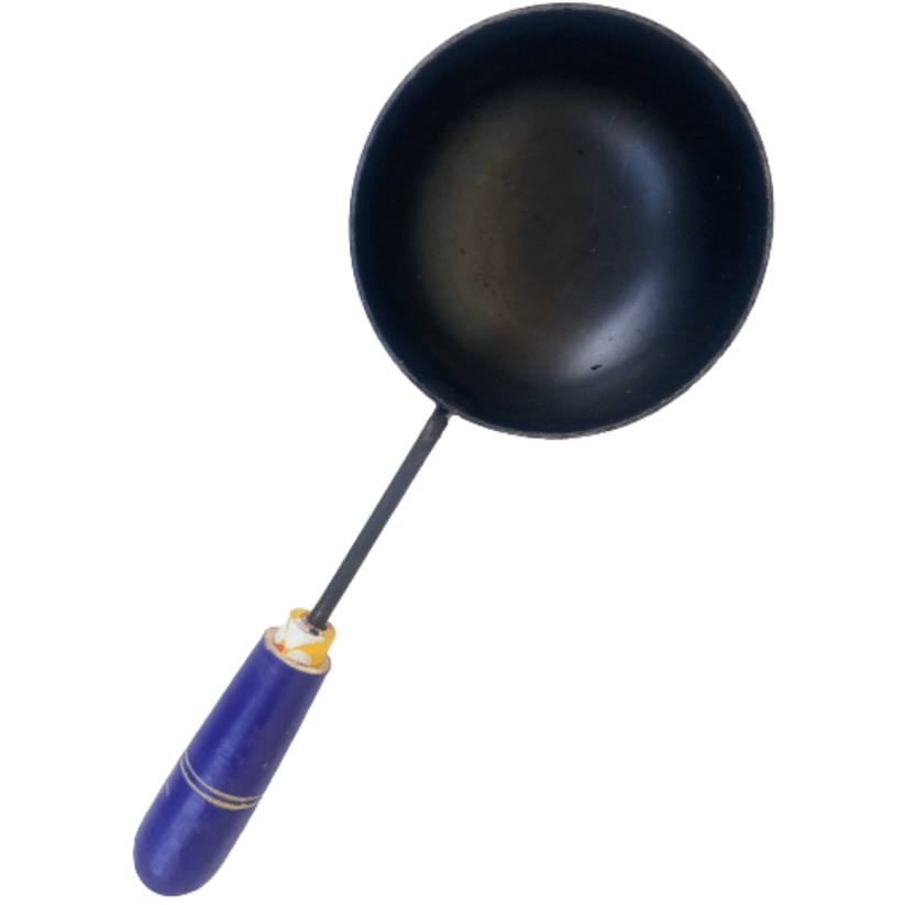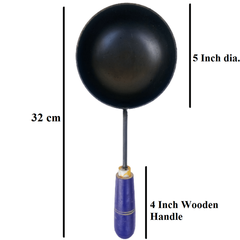 Deep Bottom Iron Tadka pan / Frying Pan / Tarka Karshul / Omelette Pan / Thalippu Karandi / Loha Oggarane Pan / Lokhand Chaunk Pan with Wooden Handle (400 g, 32 cm, 300 ml)