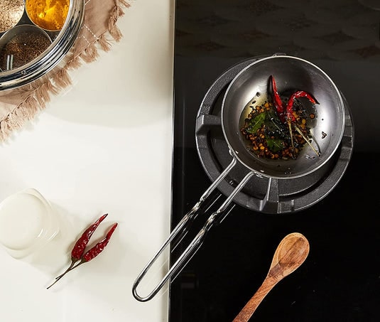 Heat Resistant: Comes with the wooden handle that helps in holding it without feeling the heat while pouring the seasoning over the cooked food
