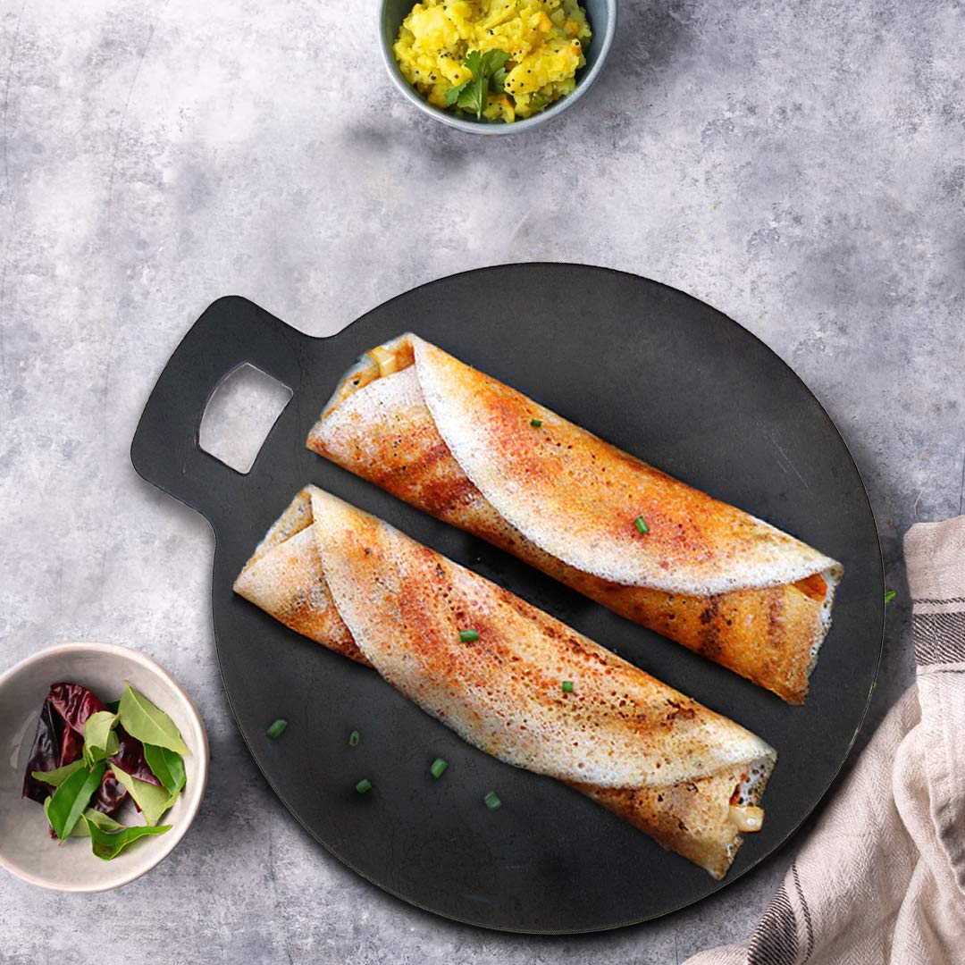 Induction & Gas Compatible - Round Shaped Flat Base Iron Dosa & Roti Tawa (11 Inch, 1.3 Kg)