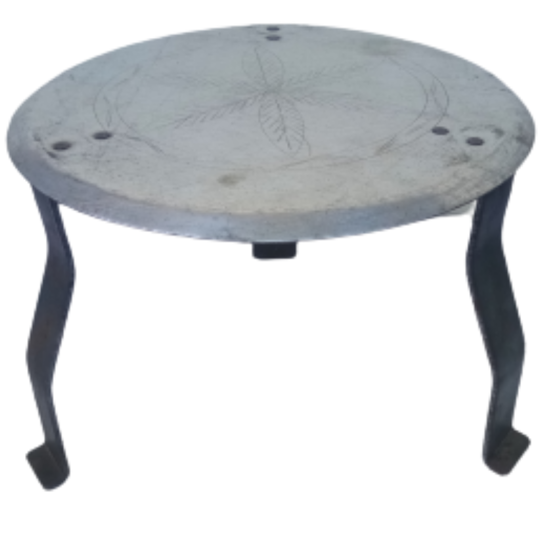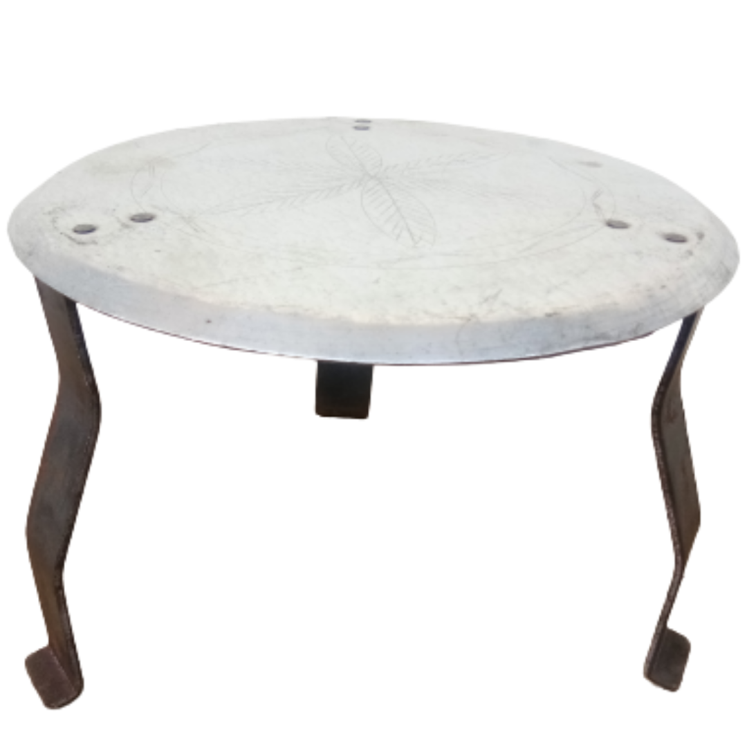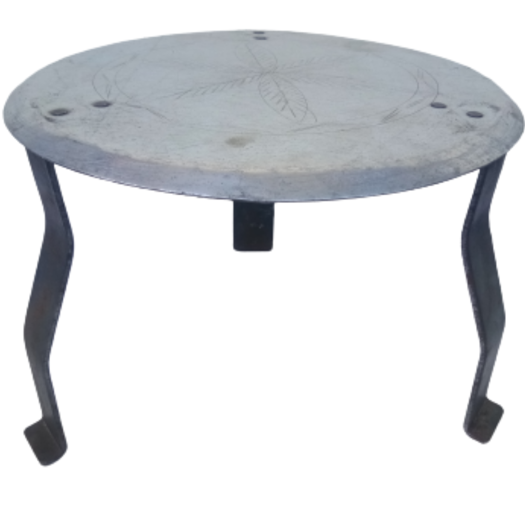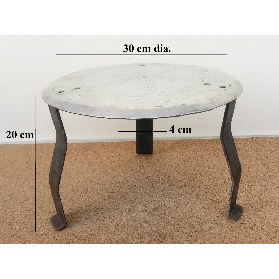 Iron Loha Lokhand Mukkali Manai / Pooja Stand / Chowki / Abhisheka Peeta / Three Legged Short Stool for Puja & Decor (30 cm dia., 20 cm Height, 1.5 Kg)