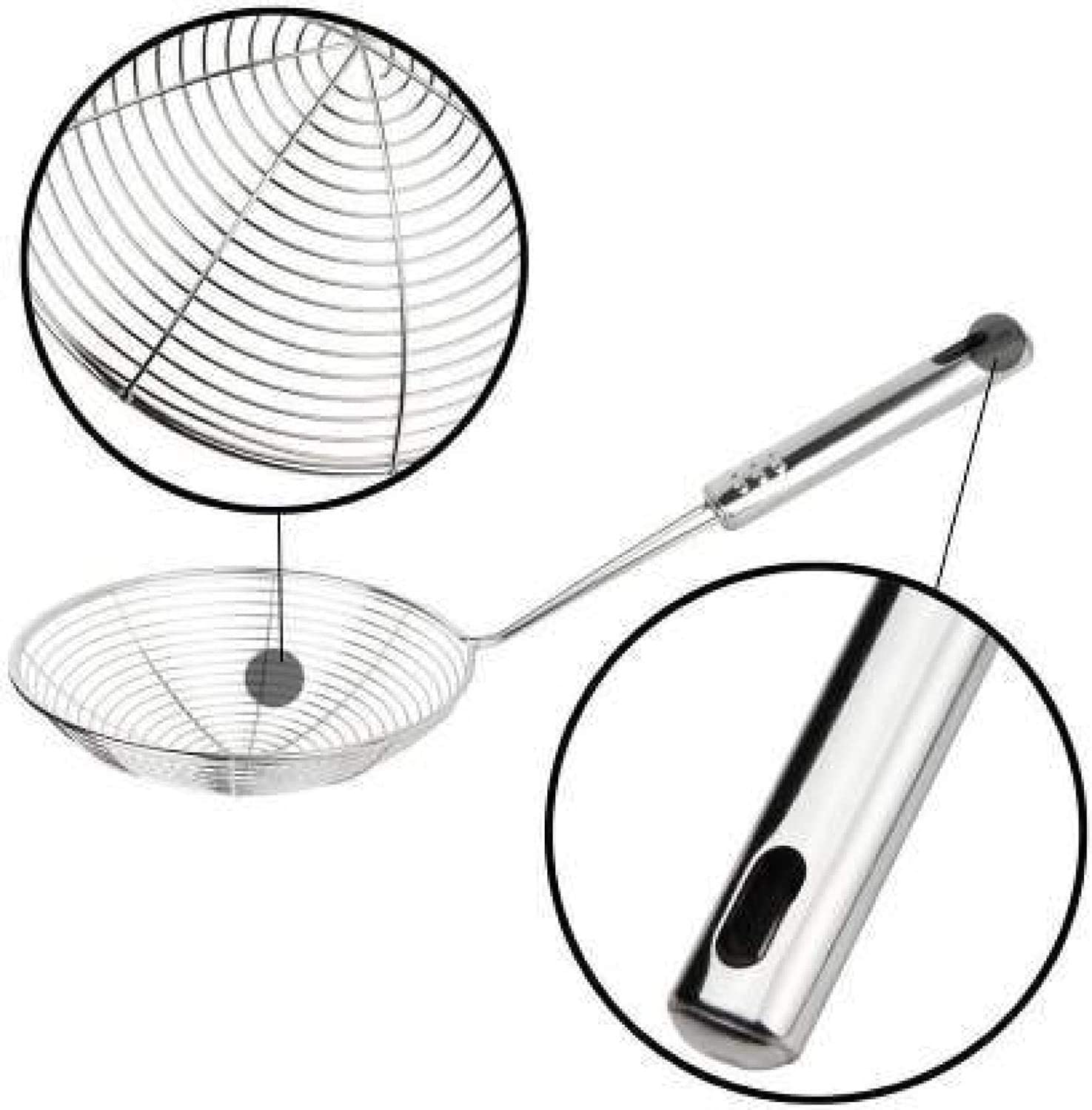 - Unique design: The product design is simple and powerful. It uses a unique single round wire spider web design. The long handle protects your hands from grease pollution when cooking or frying. For more convenient use.