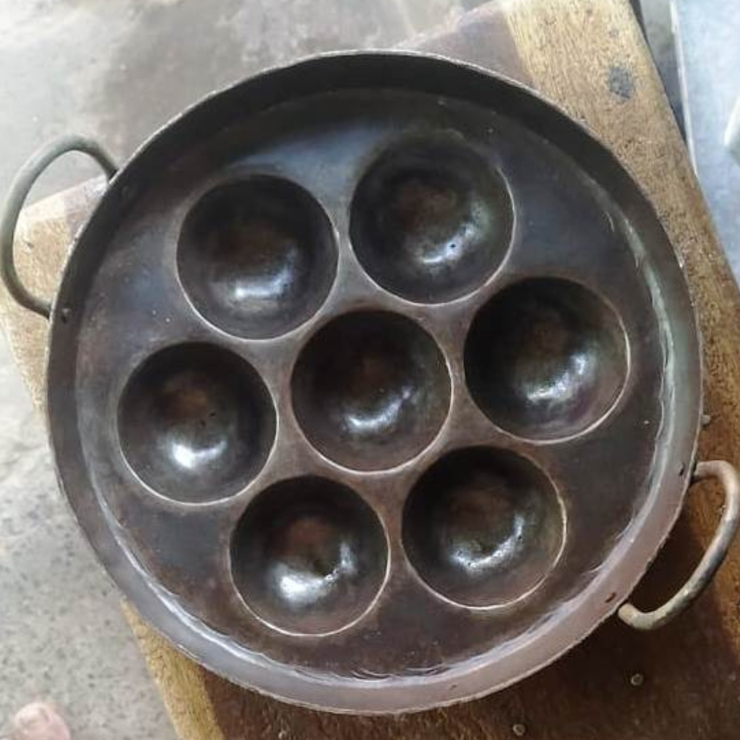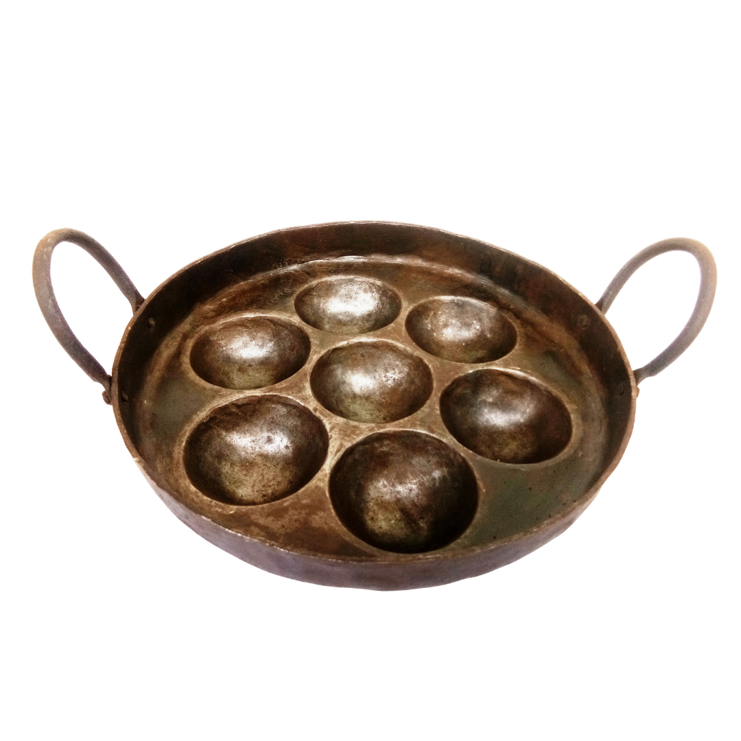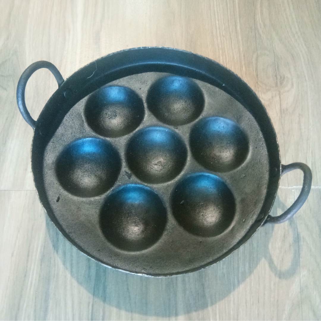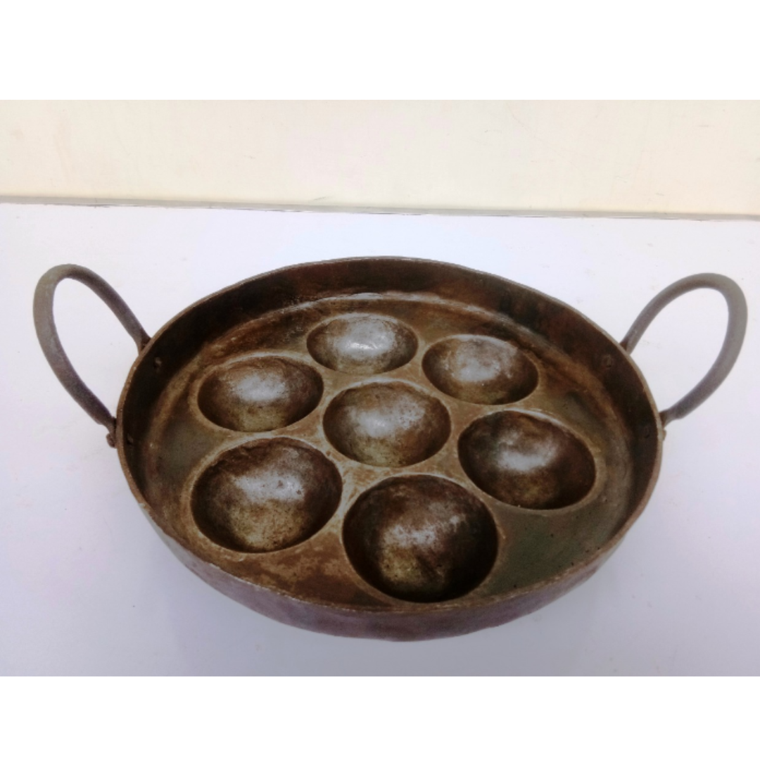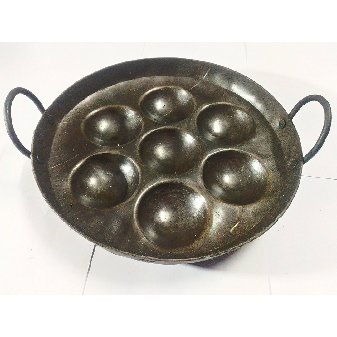 Pure Iron Deep Paniyaram Kallu / Paddu Pan / Ponganalu Chatti with 7 Cavities (Traditional Handmade Item)