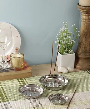 Stainless Steel Agarbatti Stand with Plate | Incense Stick Holder for Home | Pack of 2 (Assorted Designs)
