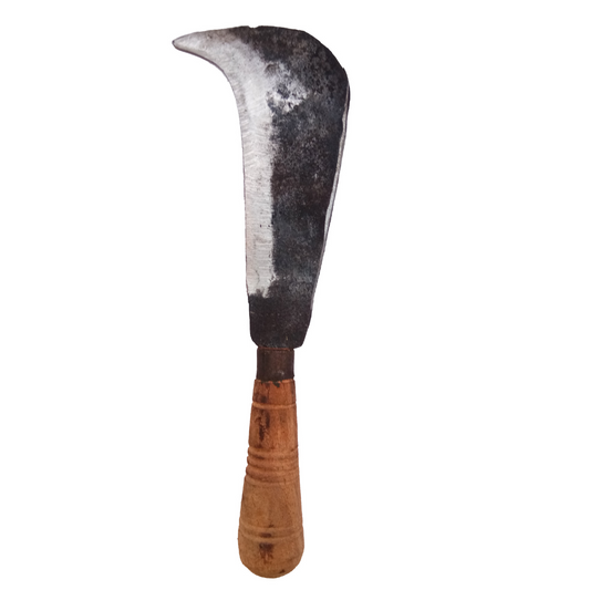 Traditional Handmade Iron Vegetable Cutter / Boti / Aruvamanai with Wood Base (Medium Size, Length 45 cm, Width 8 cm, Blade Length 20 cm)